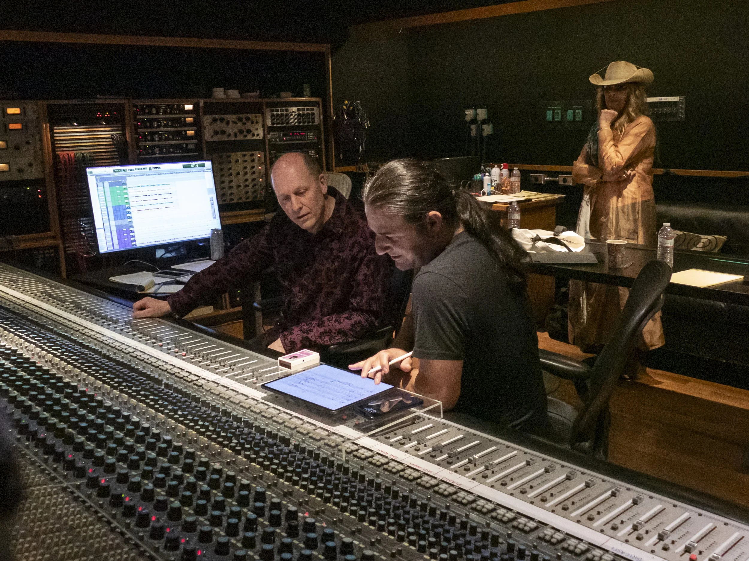 Naomi Louise Warne of Ukamusic in the control room with her co-producer Brian Vibberts & fellow arranger Dan Pugach at EastWest Studios in Los Angeles 2025.
